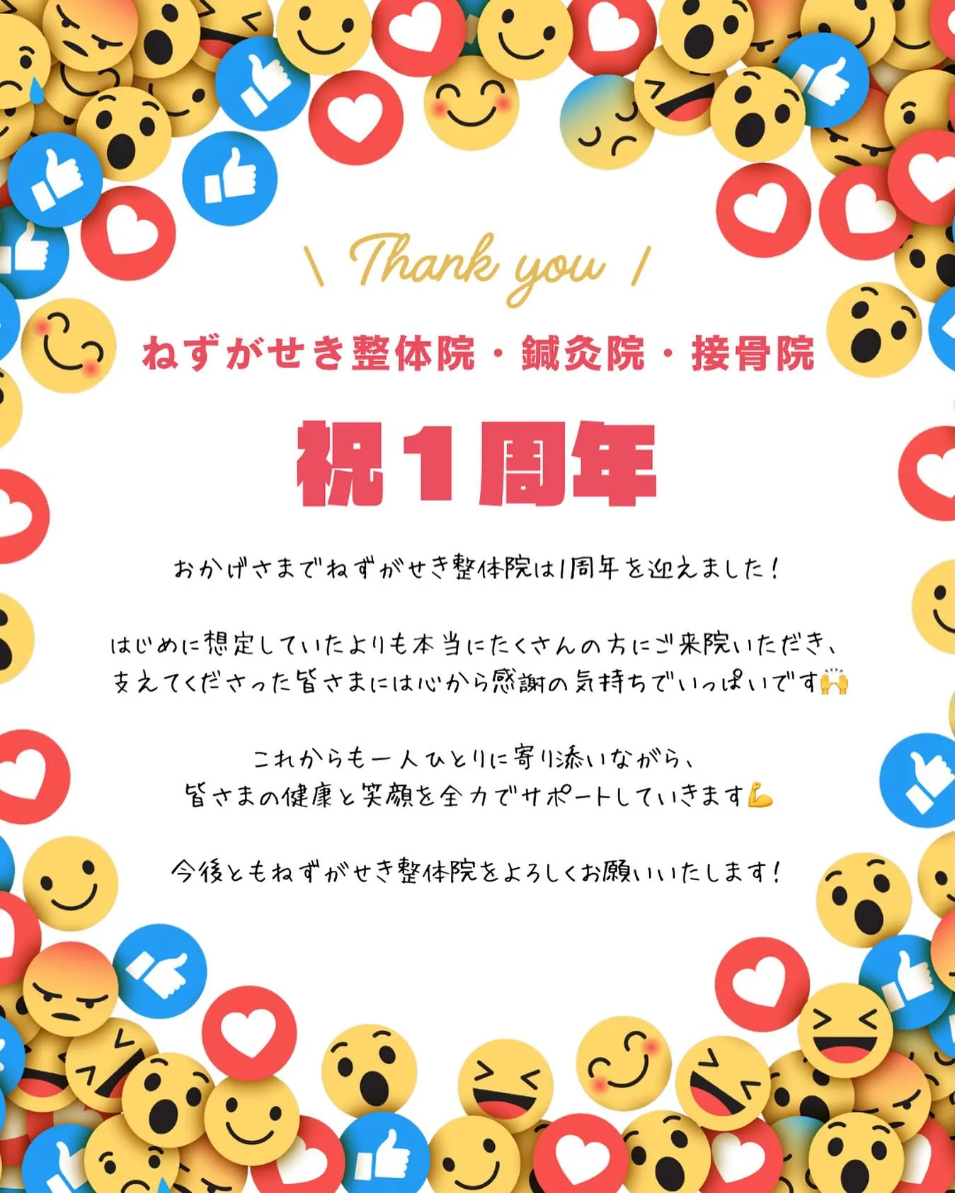 おかげさまでねずがせき整体院は1周年を迎えました!